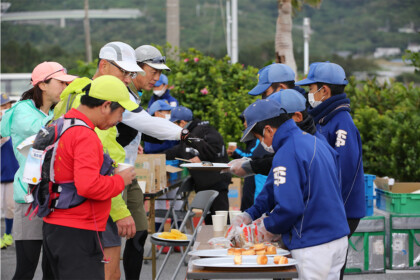 By enjoying the beautiful scenery of Okinawa and fostering conversations at the aid stations,